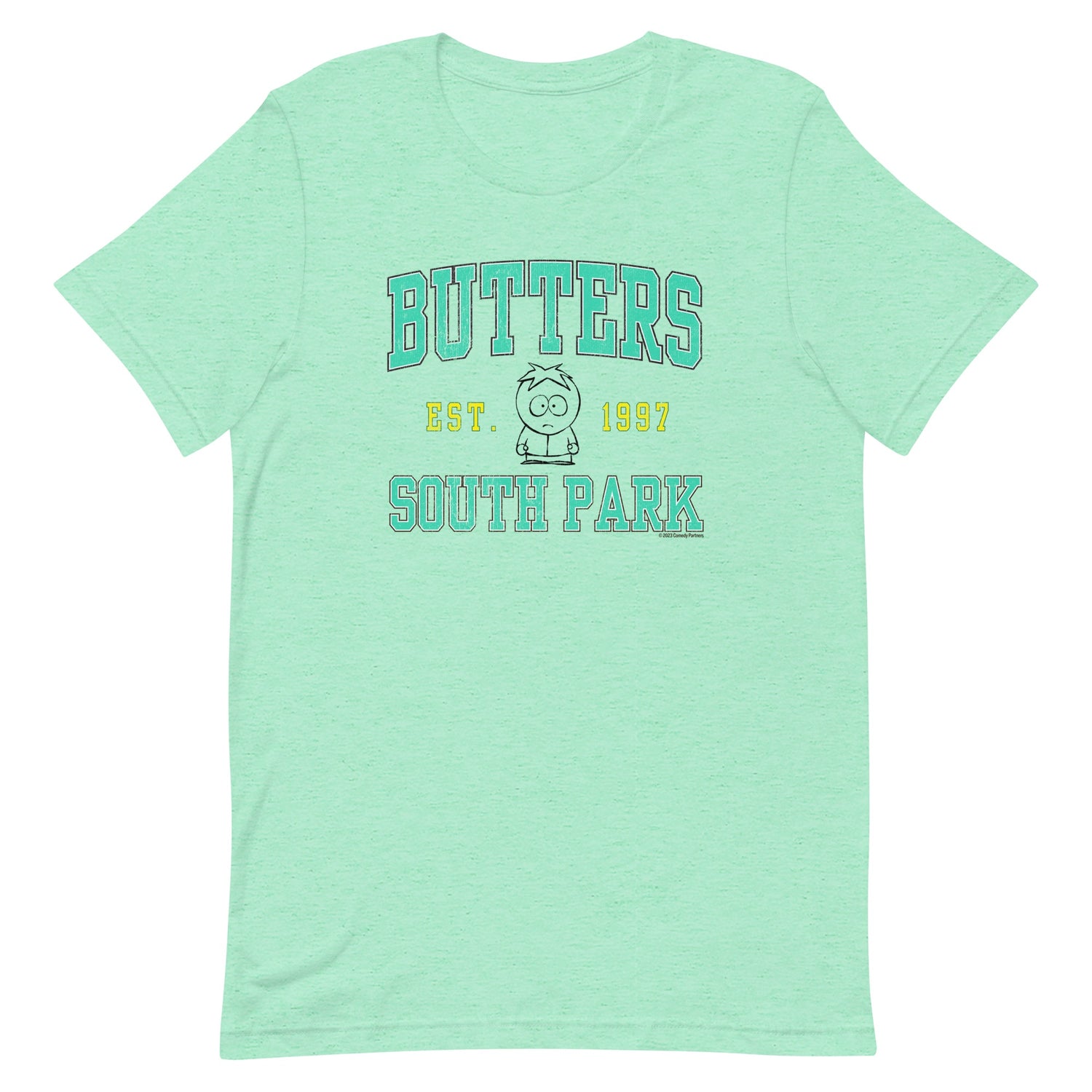 The South Park Butters Collegiate T-Shirt is designed with a classic and timeless collegiate inspired design, offering a comfortable and casual feel.