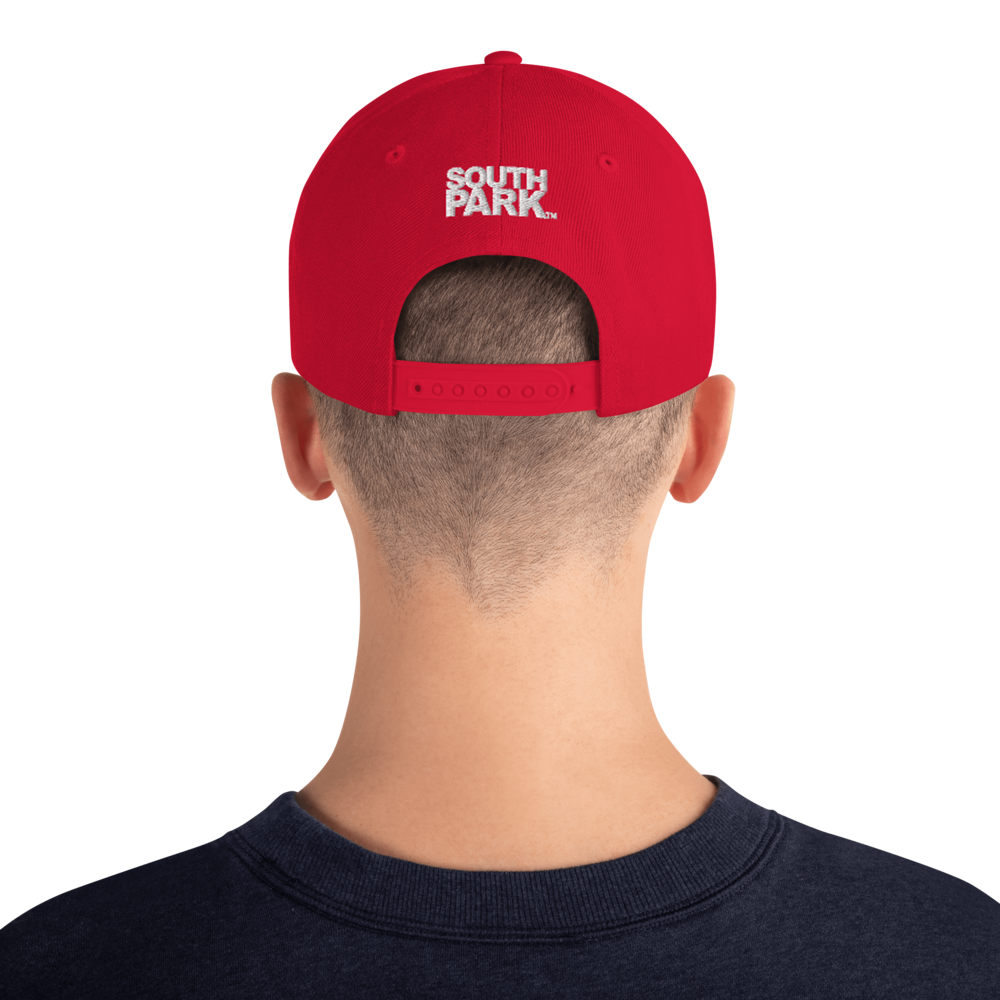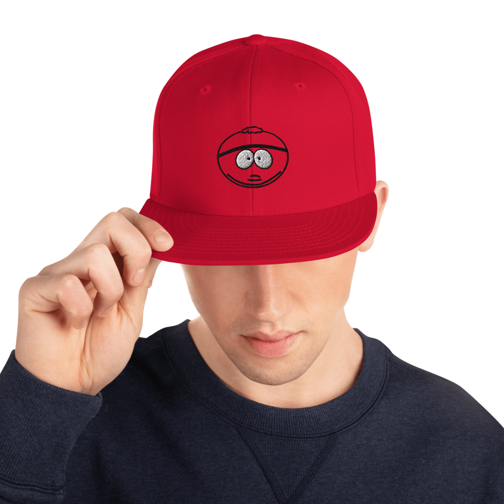 Whether you're out picking up Cheesy Poofs or in playing World of Warcraft with your friends, this South Park Cartman Embroidered Flat Bill Hat shows the world that you are the #1 Eric Cartman fan. Featuring Cartman's face embroidered against a red background, this flat bill hat is the perfect finishing touch to any style.