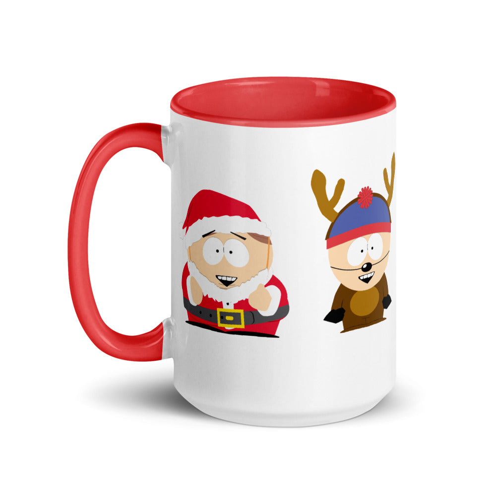 Get into the holiday spirit with a hilarious twist from South Park! The South Park Cartman Santa and the Boys as Reindeer Mug features Cartman dressed as Santa and his pals Stan, Kyle, and Kenny as his trusty reindeer. Perfect for enjoying your favorite hot beverages, this mug adds a festive and funny touch to your holiday season.
