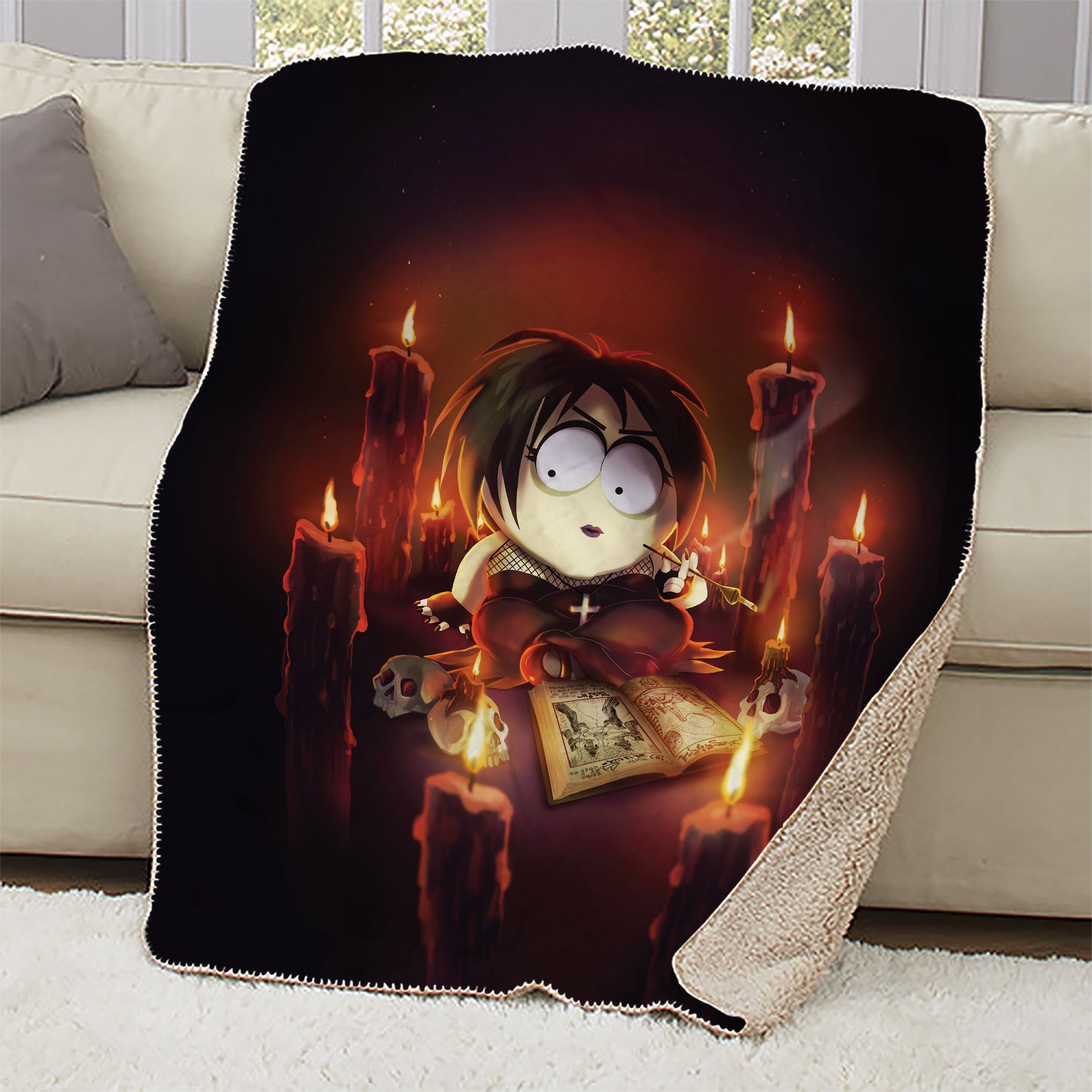 From practicing spells to writing poetry about death and sorrow, you will love snuggling up in this South Park Goth Henrietta Sherpa Blanket. With a haunting design of Henrietta on the mink front and complete with a soft sherpa back, this South Park blanket will become any goth kid's new favorite accessory.