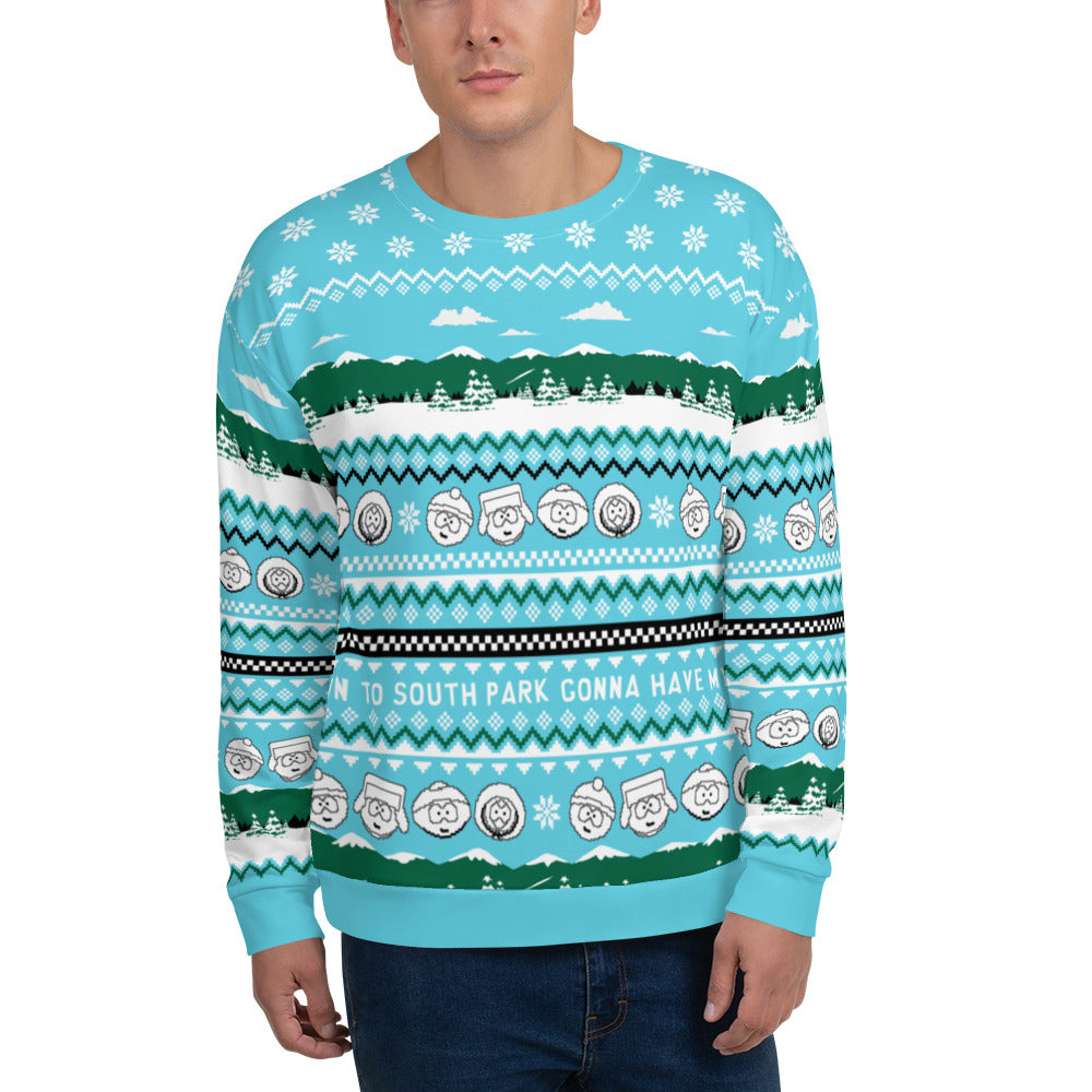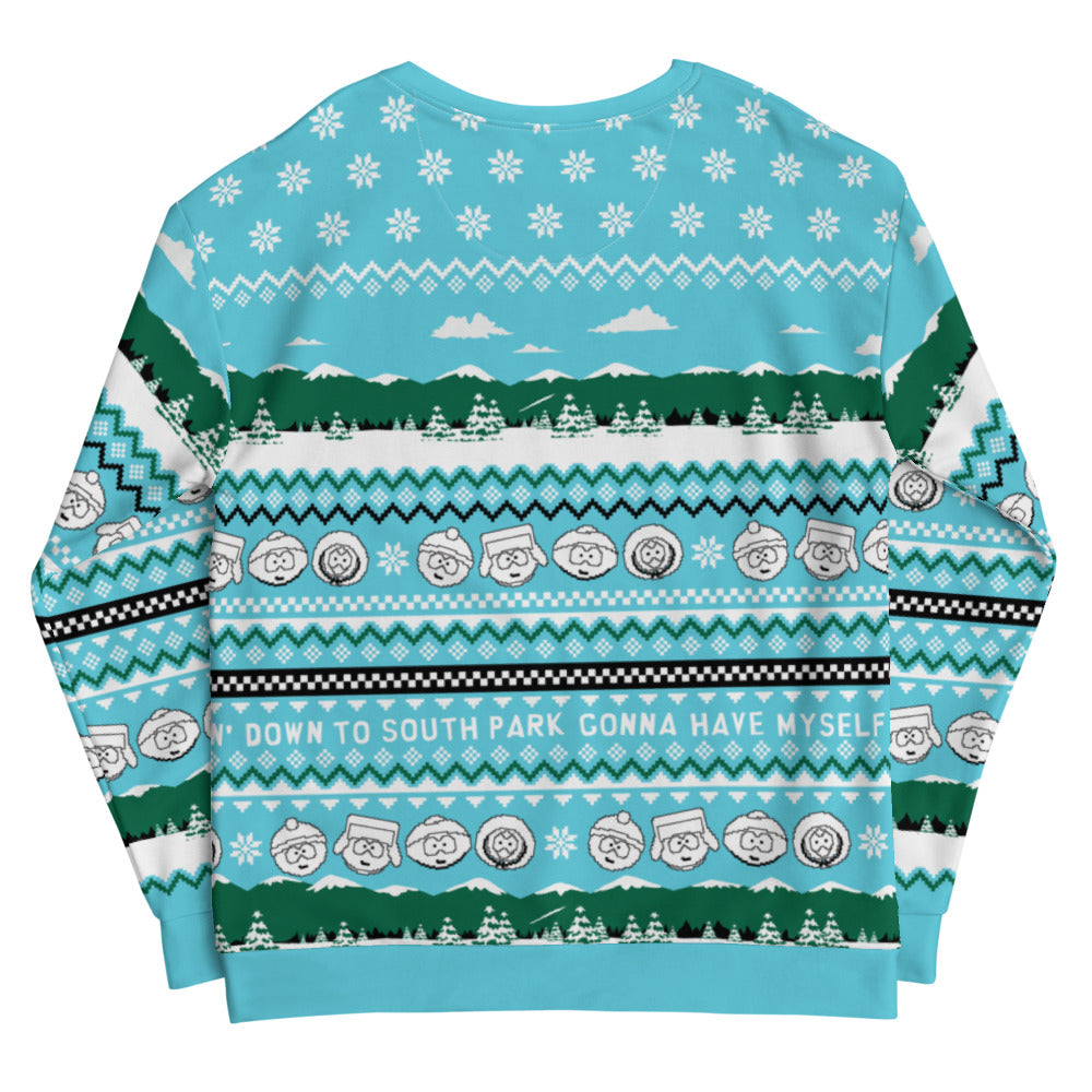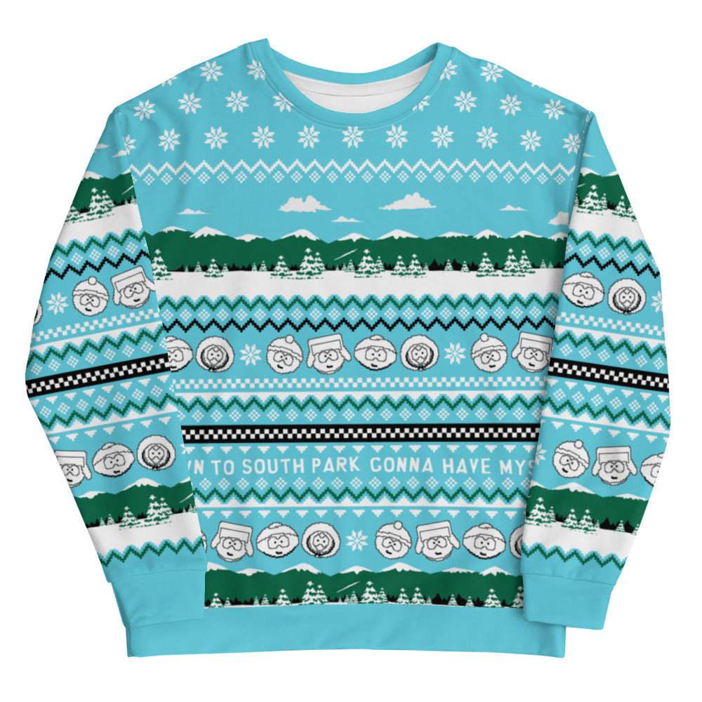 Get ready for a holiday adventure with the South Park Holiday Crewneck Sweater! Featuring a delightful design that showcases the iconic faces of Stan, Kyle, Cartman, and Kenny against a snowy South Park backdrop, this sweater captures the essence of winter fun. The catchy phrase "Goin' Down to South Park" is prominently displayed, reminiscent of the beloved theme song that sets the tone for every episode. Crafted from soft, high-quality materials, this sweater is ideal for holiday celebrations, cozy nights in with friends, or outdoor winter activities. Bring a dose of humor and holiday spirit to your wardrobe with this charming South Park-inspired piece, perfect for fans who love to sing along to the theme song while celebrating the season!