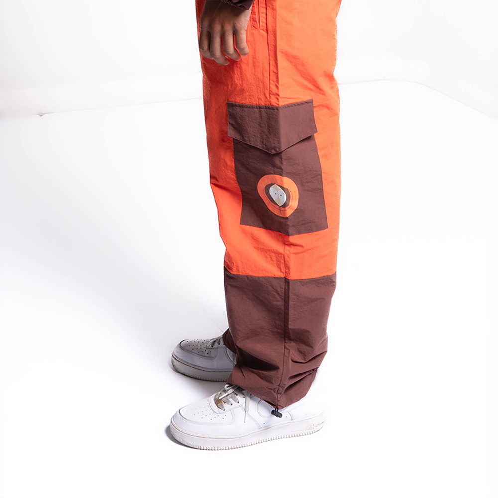 Complete your South Park look with the Kenny Colorblock Cargo Pants, crafted from the same vibrant windbreaker material as the matching jacket. Designed with Kenny McCormick's signature colors—these joggers feature a bold colorblock pattern. Made from durable, weather-resistant fabric, these cargos offer both style and functionality with a comfortable, relaxed fit.