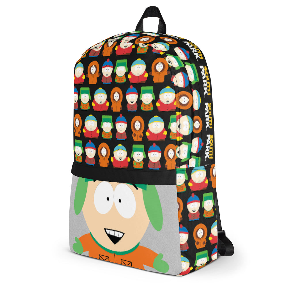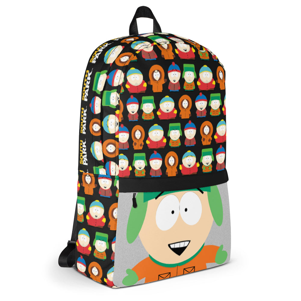 With a spacious interior and multiple compartments perfect for laptops, phones, and notebooks, this South Park Kyle Backpack is practical, eye-catching, and hilarious. Featuring a grinning Kyle on the bottom pocket and a patterned design with your favorite South Park characters, this backpack is a must-have accessory for fans.