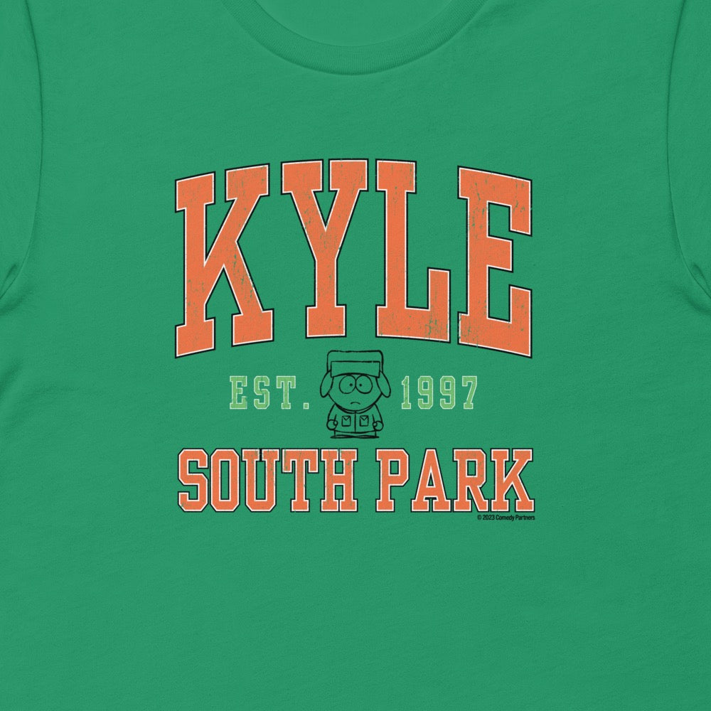 The South Park Kyle Collegiate T-Shirt is designed with a classic and timeless collegiate inspired design, offering a comfortable and casual feel.