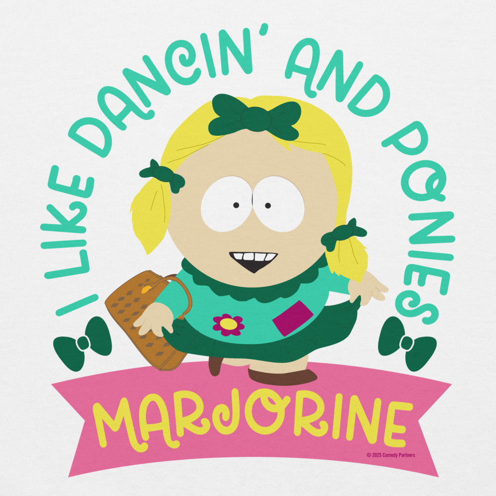Get cozy with South Park flair! The Marjorine "I Like Dancin' & Ponies" Hoodie is perfect for fans who love a good laugh and even better comfort. Featuring a unisex fit and Marjorine's memorable quote, this hoodie will have you dancing and dreaming of ponies in style.
