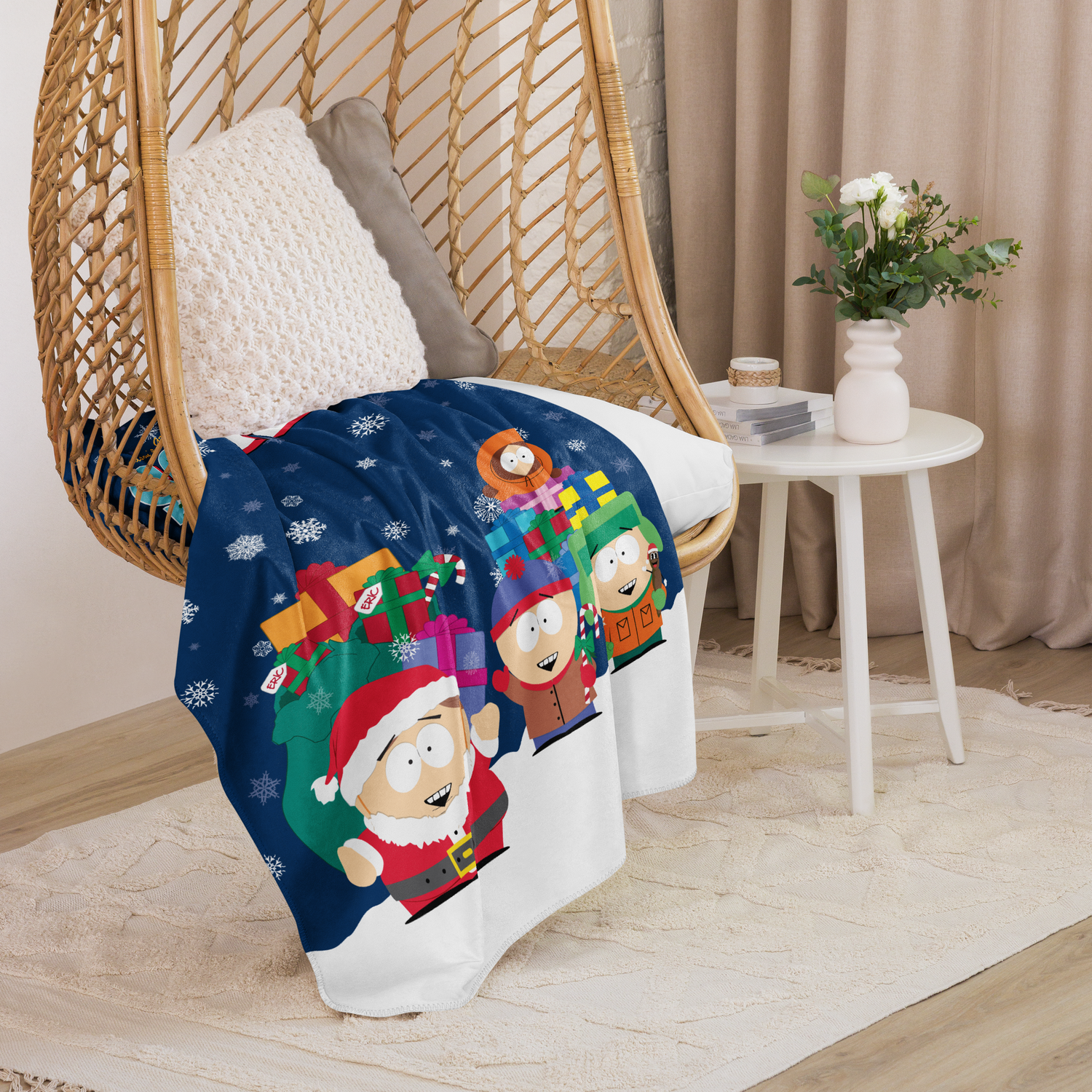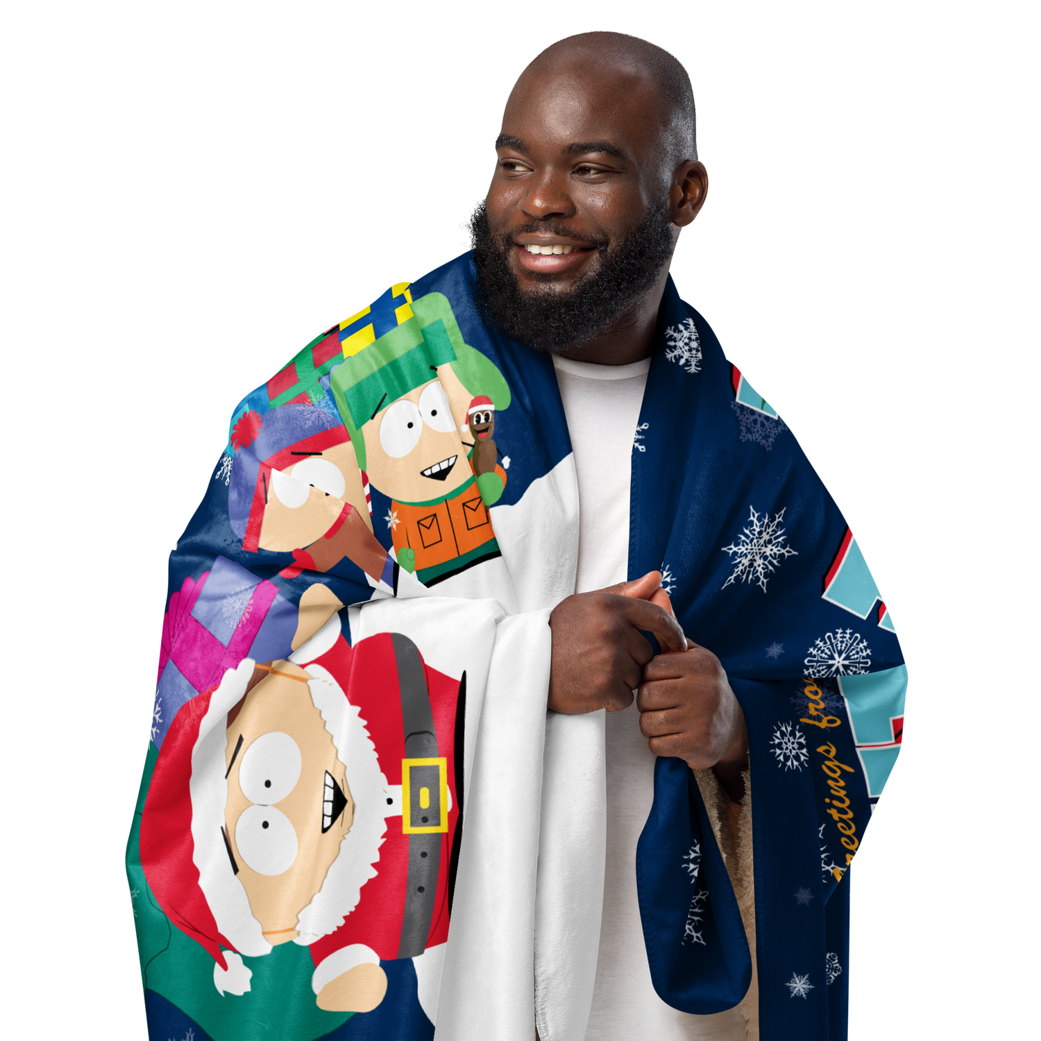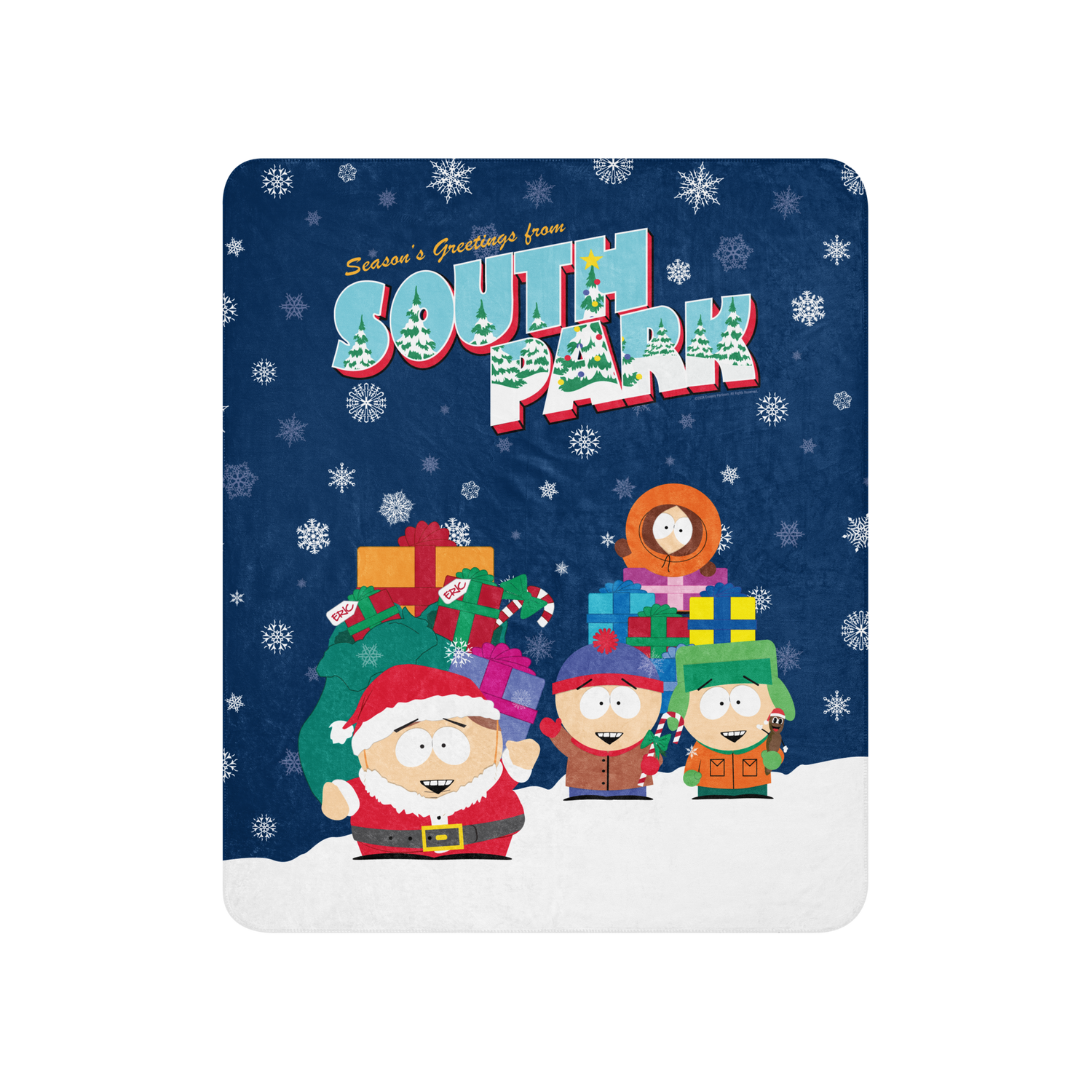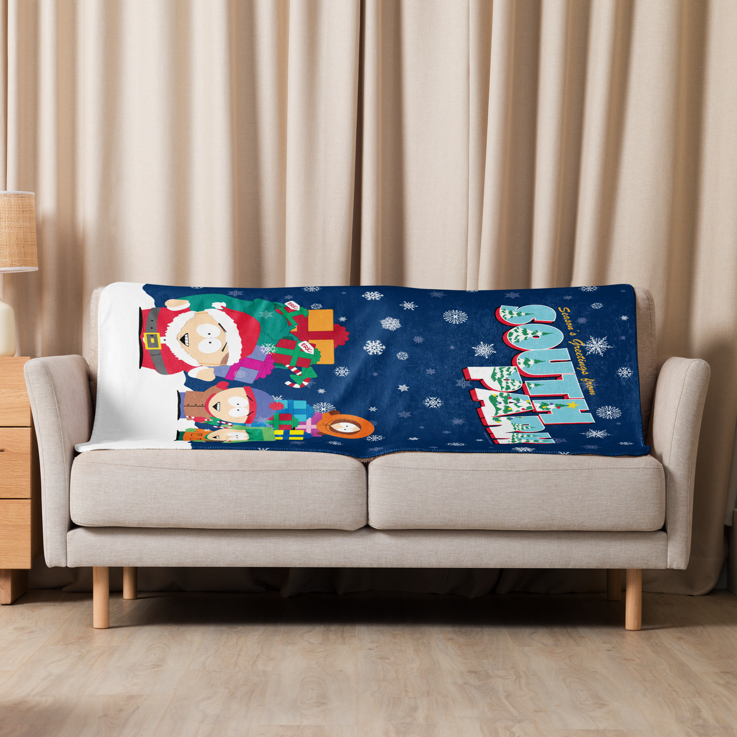 Stay warm and cozy this holiday season with the South Park Season's Greetings Sherpa Blanket! Featuring your favorite South Park characters in a festive holiday design, this ultra-soft blanket is perfect for snuggling up on cold winter nights.