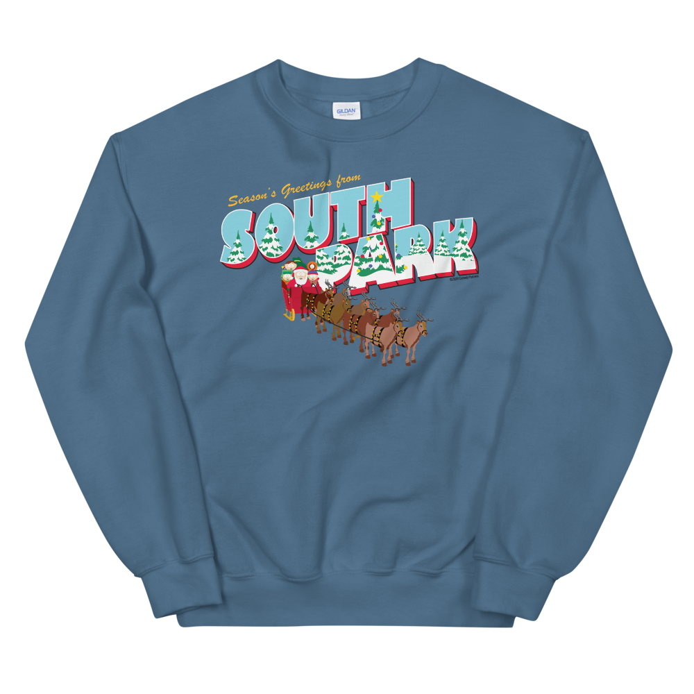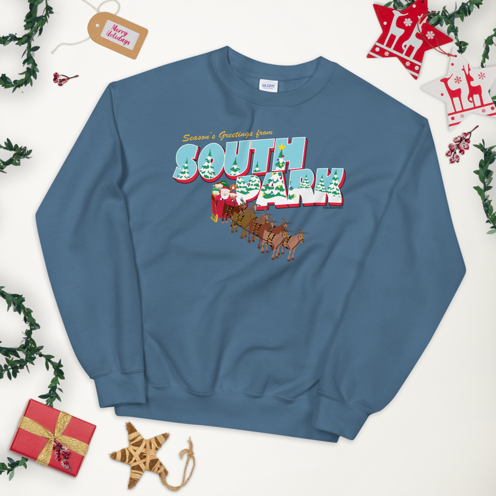Season’s greetings from your friends in South Park! Featuring Stan, Kyle, Cartman and Kenny with Santa, this cozy South Park Season's Greetings Holiday Crewneck Sweatshirt is sure to sleigh the holiday sweater game this season.