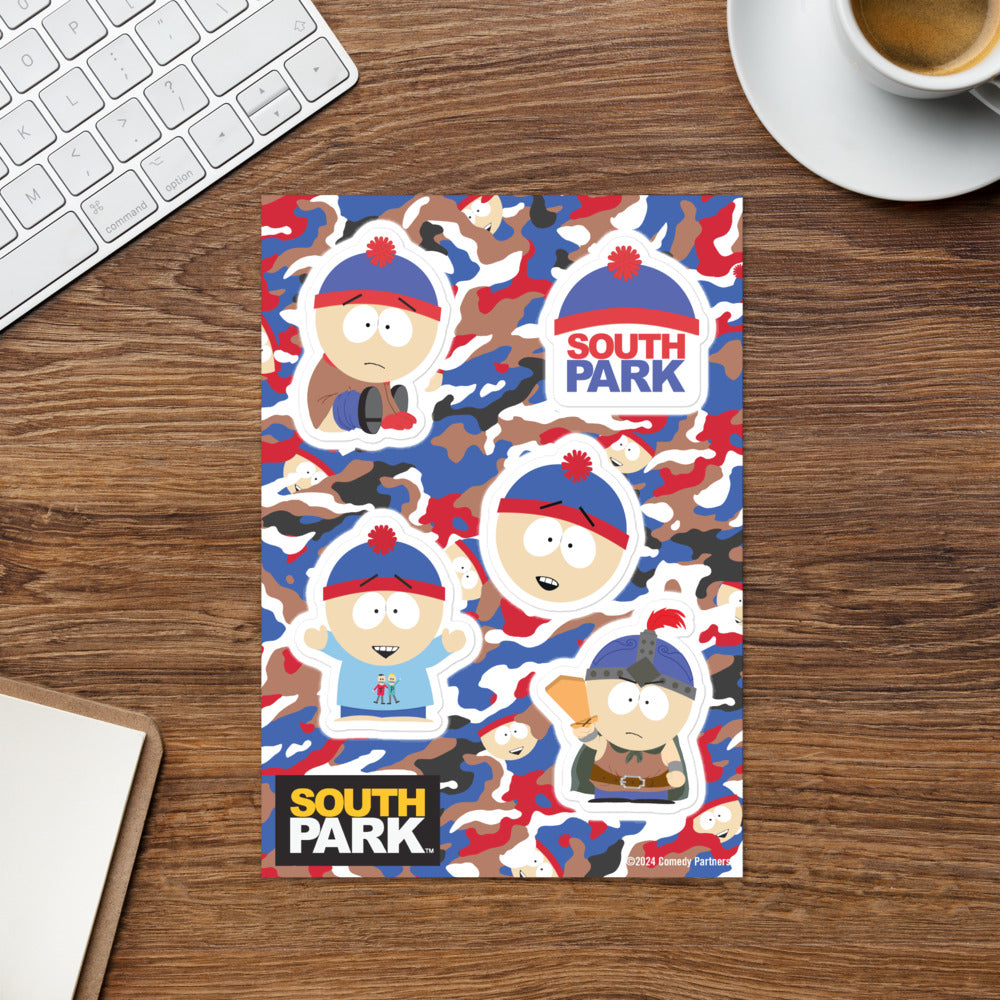 Show your love for the level-headed and kind-hearted Stan Marsh with the South Park Stan Sticker Sheet. Featuring a variety of stickers that capture Stan in his iconic blue jacket and red chullo hat, these designs showcase his memorable expressions, funny moments, and his adventures with his friends. Perfect for decorating your laptop, water bottle, notebooks, or any surface you want to personalize, these high-quality, durable stickers bring Stan's character to life. Whether you're a fan of his loyalty, his sense of humor, or his many antics, this sticker sheet is a must-have for any South Park fan!
